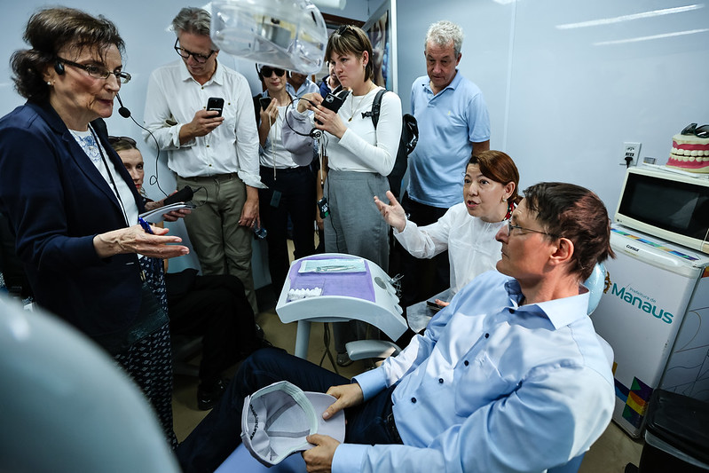 A visita à unidade fluvial, que neste momento está ancorada na comunidade Jatuarana, a 40 minutos de barco da capital, fez parte da agenda de compromissos da equipe no Brasil antes da Reunião de Ministros da Saúde e Reunião Conjunta de Ministros de Finanças e Saúde no G20.