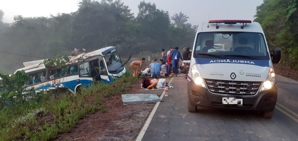 Mais de 20 pessoas ficam feridas após ônibus capotar e cair em ribanceira na AM-363
