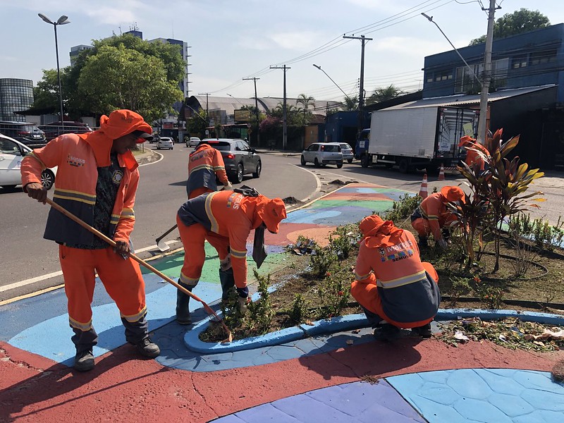 Prefeitura de Manaus promove ação de paisagismo em trevo e praça do São Francisco