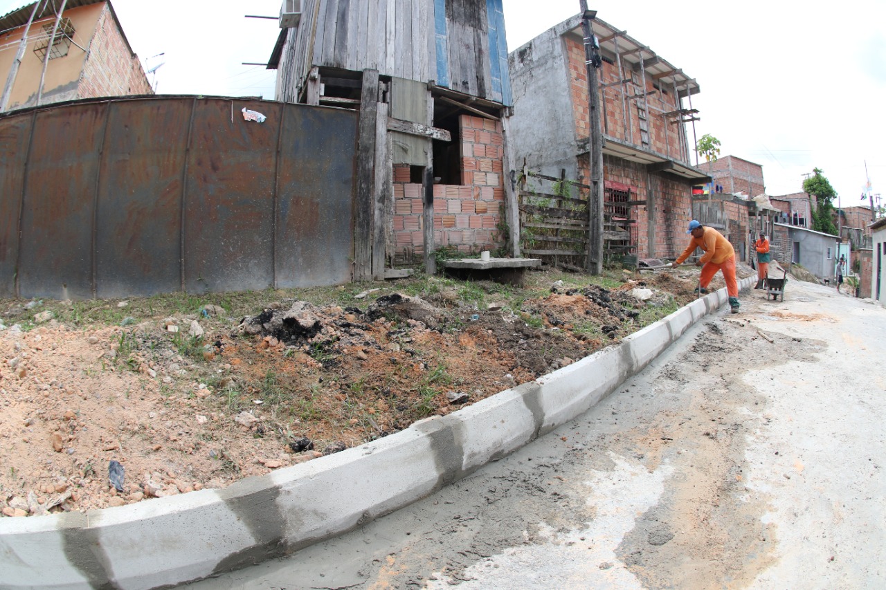 Prefeitura de Manaus trabalha na implantação de 300 metros de meio-fio e sarjeta no Nova Vitória
