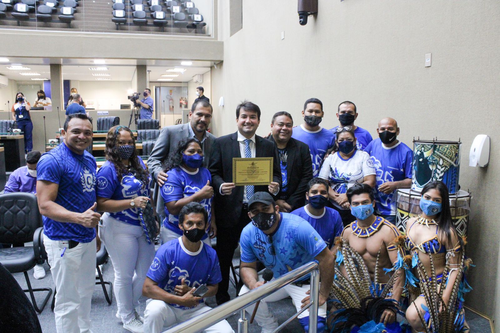 O Boi-Bumbá Caprichoso foi homenageado na manhã desta sexta-feira, 05, na Assembleia Legislativa do Estado do Amazonas (Aleam) pela passagem do Dia Nacional da Cultura. A propositura da sessão especial é de autoria do deputado estadual e presidente da Comissão de Cultura da Assembleia, Saullo Vianna (PTB) que entregou ao presidente do bumbá, Jender Lobato, o certificado de reconhecimento pela brilhante contribuição da Associação Cultural Boi-Bumbá Caprichoso em prol do desenvolvimento cultural no âmbito da sociedade amazonense.