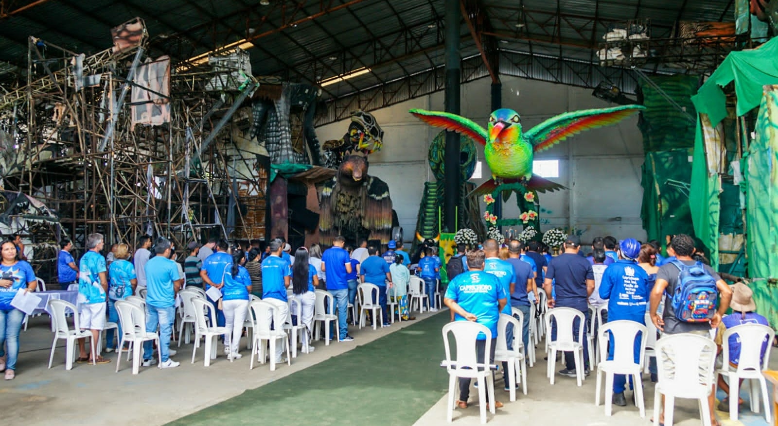 Celebrada pelo padre Benedito Teixeira, a missa da alegria em ação de graças concedeu bênçãos aos artistas e todos os setores do Boi-Bumbá Caprichoso durante a abertura do galpão central de alegorias na manhã desta sexta-feira, 01 de abril. Diretores, conselheiros de artes, itens, colaboradores e sócios evocaram proteção de Deus para a construção, em segurança, do projeto boi de arena “Amazônia Nossa Luta em Poesia”.