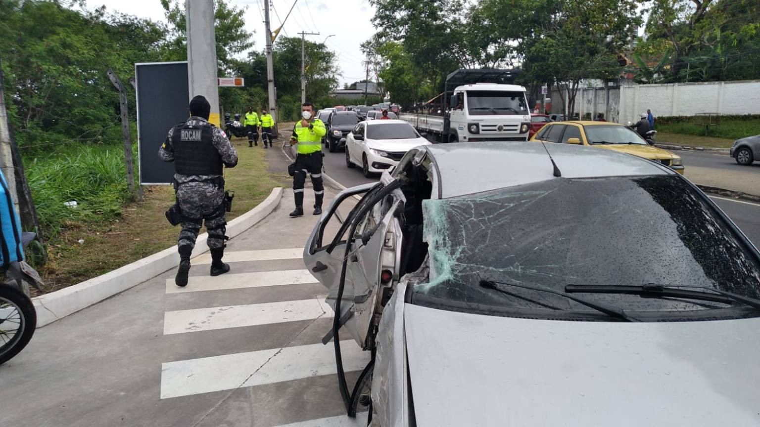 “O veículo dos assaltantes capotou diversas vezes e os assaltante saíram, nessa situação, dois dos assaltantes, dispararam contra os policiais da Rocam, os policiais reagiram e também dispararam os tiros contra os nacionais, nesse confronto, dois vieram a óbito e o caso também está sendo apurado”, explicou o delegado plantonista da DEHS, Daniel Vezzani.