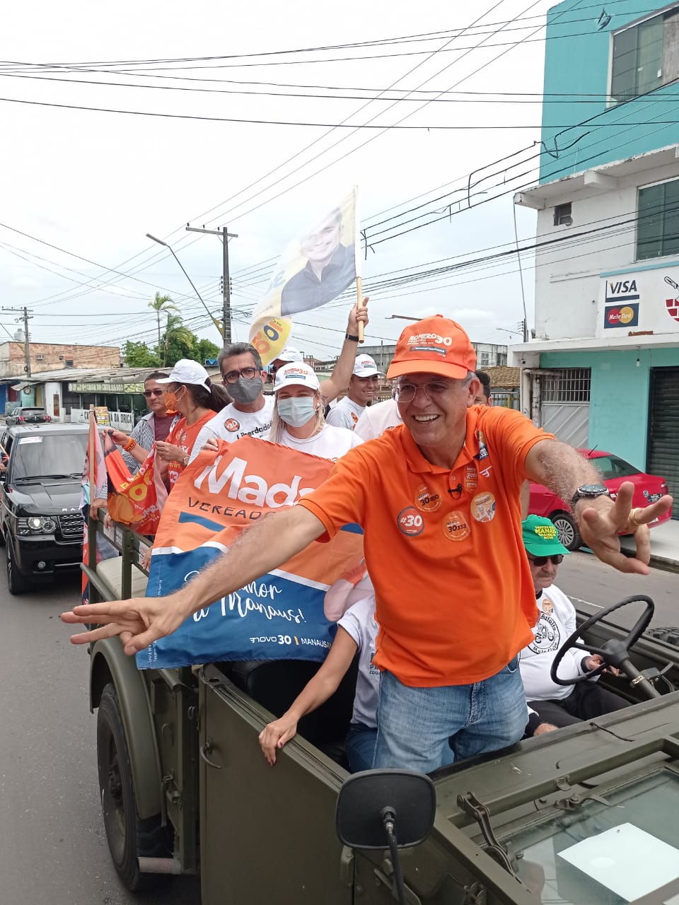 Com bandeiras agitadas, carro de som, jingle de campanha e fogos de artifício, a carreata contou com o reforço do movimento Direita Amazonas e do grupo de motociclistas Bodes do Asfalto, do qual Romero faz parte.